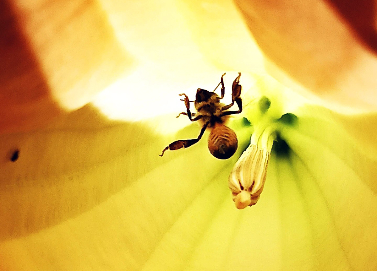 Apis mellifera en Brugmansia suaveolens. Foto: Orlik Gómez García
