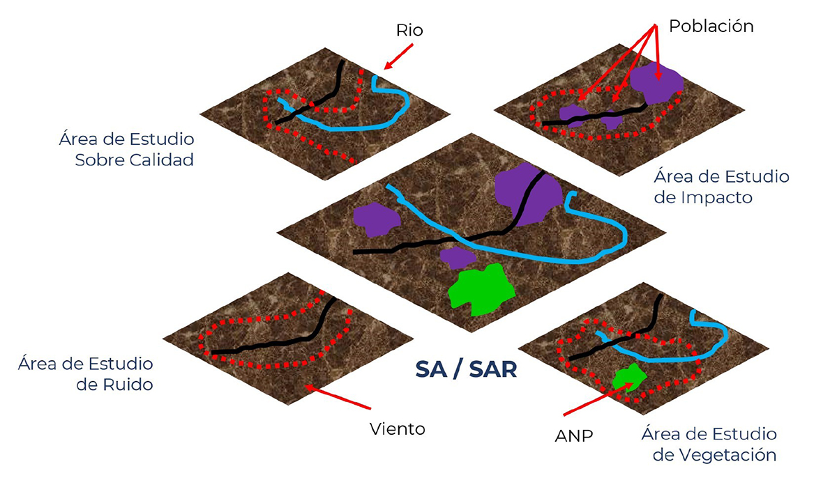 Y es en el fundamento de dichos documentos en donde la autoridad ambiental solicita que se diseñe un área de estudio, región o espacio que contenga ecosistemas, elementos del medio ambiente o tipos de vegetación que sean representativos del sitio o predio en donde se pretende instalar o insertar un proyecto; para posteriormente mediante un análisis hacer una identificación y evaluación de los impactos del proyecto sobre dicha superficie y su ambiente. Esta región recibe el nombre de Sistema Ambiental (SA) o Sistema Ambiental Regional (SAR), y su nomenclatura/tamaño se encuentra en estrecha relación con el tipo de sector al que pertenece el proyecto a instalar y sobre todo a sus dimensiones (proyecto local o regional) o incluso su ubicación precisa.
