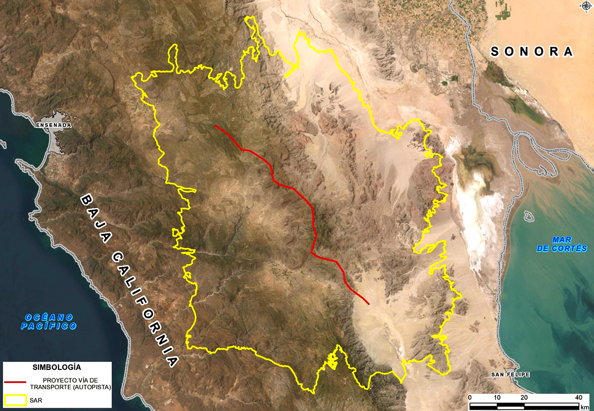 Delimitación de un SAR hipotético que considera todos los ambientes por los que atraviesa la construcción de una carretera