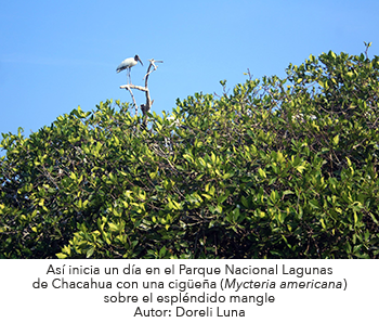 En la impresionante costa Oaxaqueña, se encuentra un rincón lleno de vida como ningún otro: el Parque Nacional Lagunas de Chacahua (PNLC). Dentro de aproximadamente 15,000 hectáreas del PNLC, diversos ecosistemas se mezclan, generando un ambiente habitable para diversas especies. El PNLC fue la primera Área Natural Protegida del país decretada en 1937 y es considerada como Región Marina Prioritaria en México (RTP-34). Asimismo, es reconocido como sitio RAMSAR (No. 1819) y un Área Importante para la Conservación de las Aves (AICA 222). Entre la vegetación del PNLC, sobresale el manglar, conformado por el mangle rojo (Rhizophora mangle), negro (Avicennia germinans), blanco (Laguncularia racemosa) y el botoncillo (Conocarpus erectus), árboles que desempeña un papel clave en el ecosistema. Sus raíces que emergen de los corredores acuáticos salvaguardan la costa contra los