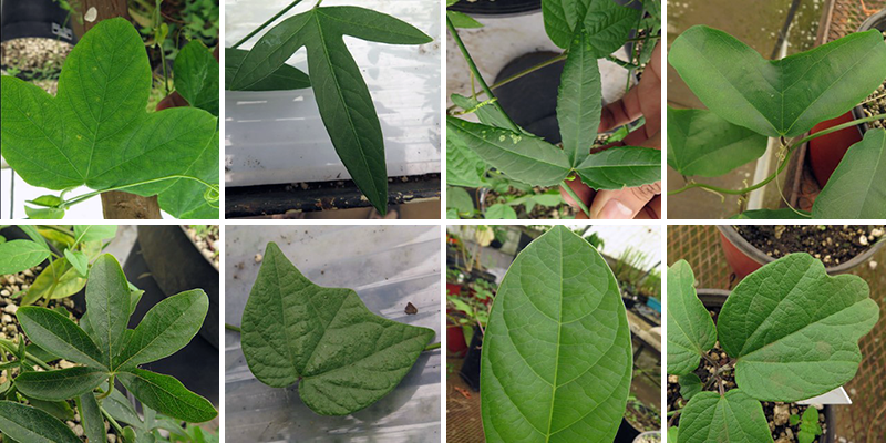 Diversidad de formas de hojas de pasionarias mexicanas cultivadas en el Jardín Botánico Francisco Javier Clavijero. Crédito: María Teresa Jimenez Segura