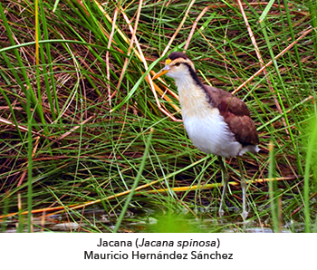 Hemos identificado, además, 185 especies de aves, 15 de ellas incluidas en la NOM-059-SEMARNAT-2010 que identifica las especies o poblaciones de flora y fauna silvestres en algún tipo de riesgo en sus supervivencia. Destaca la Mascarita de Altamira (Geothlypis flavovelata), que está en peligro de extinción y sólo se encuentra en el noreste de México, especialmente en lagunas y pantanos como los aquí estudiados. Más de 60 especies de aves migratorias usan este humedal como sitio de parada para reabastecerse, una zona estratégica para pasar el invierno en la parte sur del continente Norteamericano.