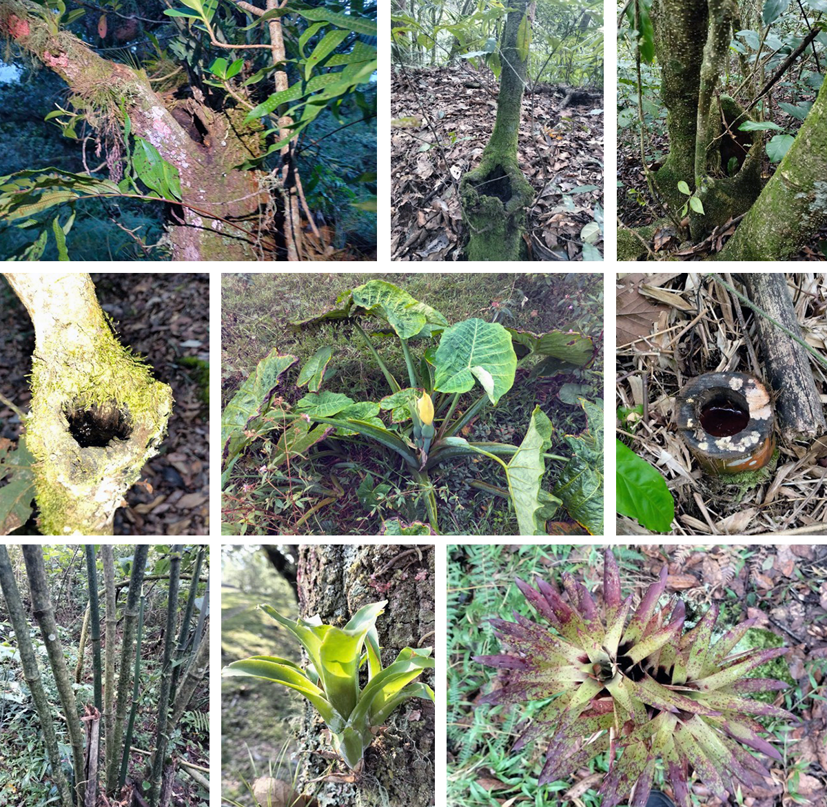 Fig 1. Ejemplo de plantas que pueden proveer fitotelmas
