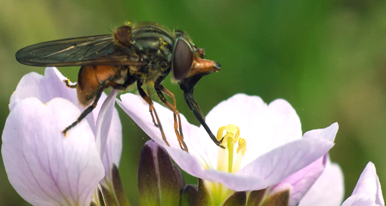 Cuando hablamos de polinización generalmente asociamos este fenómeno con las abejas, no obstante, muchos de los responsables de este proceso están representados por moscas que visitan las flores, las cuales pertenecen a 71 familias de dípteros. Hoy sabemos que cerca de500 especies de plantas son visitadas por moscas, y que intervienen en la polinización de más de 100 plantas cultivadas, tales como fresas, té, mango, cacao, cebolla, coliflor, zanahoria, manzana, entre otras.