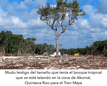 La destrucción del hábitat, es decir, el hogar de los animales, provocado principalmente por las actividades antrópicas, ya sea para actividades agropecuarias, desarrollos turísticos o urbanos, para abrir carreteras, vías del tren (lo que está sucediendo por ejemplo con el Tren Maya), tiene severas consecuencias sobre las especies animales, siendo más notorias en las poblaciones de mamíferos grandes y medianos debido a su vulnerabilidad.