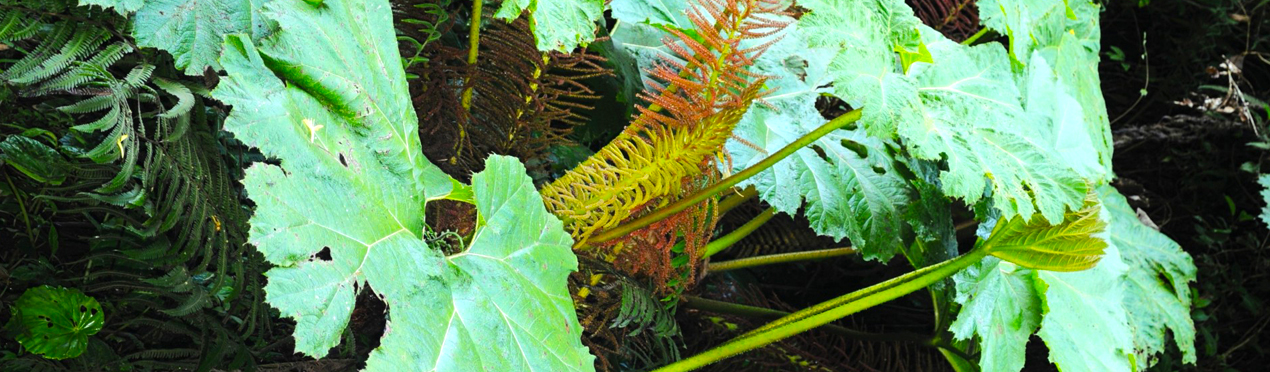 Hacemos referencia a Gunnera mexicana, especie nativa de México, una de las plantas herbáceas más grandes del mundo, y con ello evocamos una sentida reflexión sobre la reciente pérdida del Dr. Arturo Gómez-Pompa, referente esencial de la ecología tropical y botánica de México.
