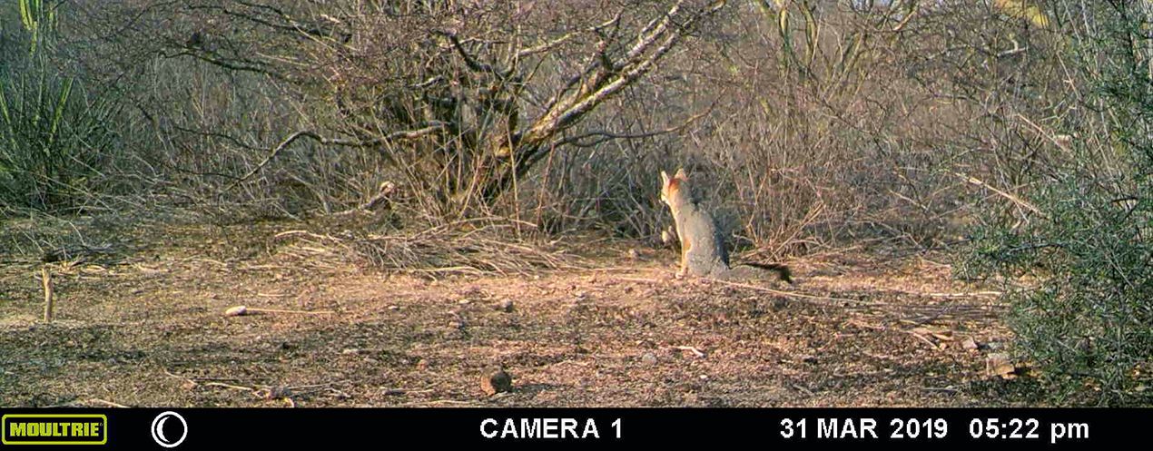 Foto captura de la zorrita gris Urocyon cinereoargenteus en San Grabriel Casa Blanca, Oaxaca.