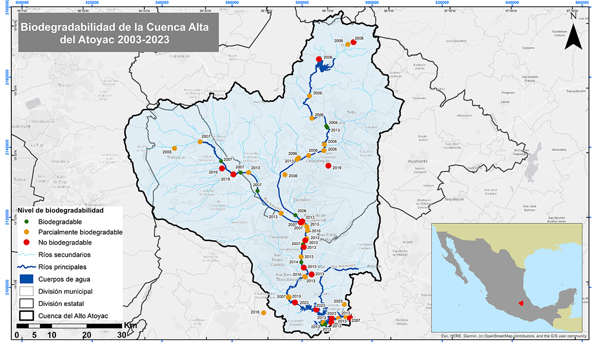 Fig 1. Niveles de biodegradabilidad en la Cuenca Alta del Atoyac, 2003–2023