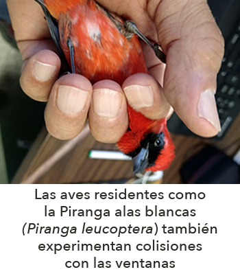Por si fuera poco, y aunado a la destrucción del hábitat y depredación por gastos domésticos, las aves se enfrentan a otro problema de causas humanas: la colisión en vidrios de ventanas de casas y edificios.