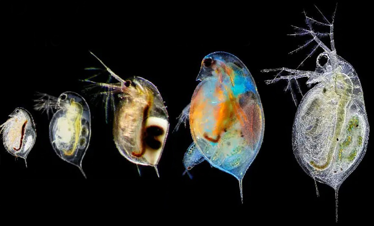 Las Daphnias, también llamadas pulgas de agua son diminutos crustáceos planctónicos pertenecientes a la familia Cladócera, existen registros de alrededor de 150 especies. Se distinguen por presentar un cuerpo traslúcido, un ojo compuesto destacado y las antenas que emplean para nadar con movimientos distintivos. Estas especies son muy apreciadas por los acuaristas por su importancia nutricional y su función en la ecología acuática.