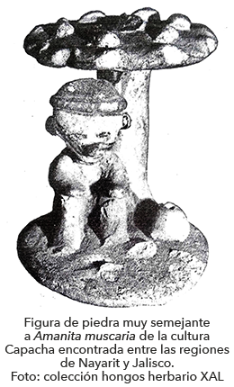 De manera particular, en Norteamérica se ha documentado que algunos grupos étnicos como los dogrib athabascan de las montañas Mackenzie en Canadá y los indígenas ojibwa que habitan a orillas del Lago Superior en Michigan utilizan a este hongoen sus prácticas chamánicas. Así mismo, Mesoamérica no está exenta del uso prehispánico de A. muscaria, debido a que se han encontrado figurillas en los estados de Nayarit y Michoacán donde se muestran fieles representaciones de este hongo, al igual que en Guatemala y El Salvador, donde han sido encontradas al menos 300 figuras de “Piedras-Hongo” hechas de piedra volcánica, de las que se desconoce cuál era su uso o función. En algunos pueblos, los campesinos utilizan este hongo para matar moscas o mosquitos poniendo fragmentos de este con agua azucarada. Por último, en Francia en la iglesia de Plaincourault existe un mural muy interesante del siglo XII donde se representa a Adán y Eva cada uno a un lado de una fructificación gigante de A. muscaria, con una serpiente enrollada que sostiene una manzana.