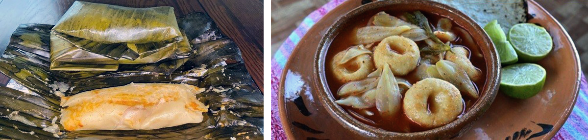 Figura 2. Tamales y caldo de flor de izote. Foto: J. Pale y Miguel Á. Contreras