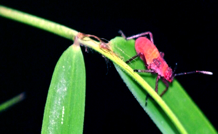 Existen varios tipos de chinches que rara vez ocasionan daño a las plantas y existen otras que sólo están en las plantas para protegerse de sus depredadores (comentario personal del Dr. Luis Cervantes del Instituto de Ecología A.C.): Insectos de escasamente unos centímetros de largo, presentan su cuerpo aplanado el cual está adaptado para vivir en el follaje o entre el culmo y la vaina del bambú (Figura 3).