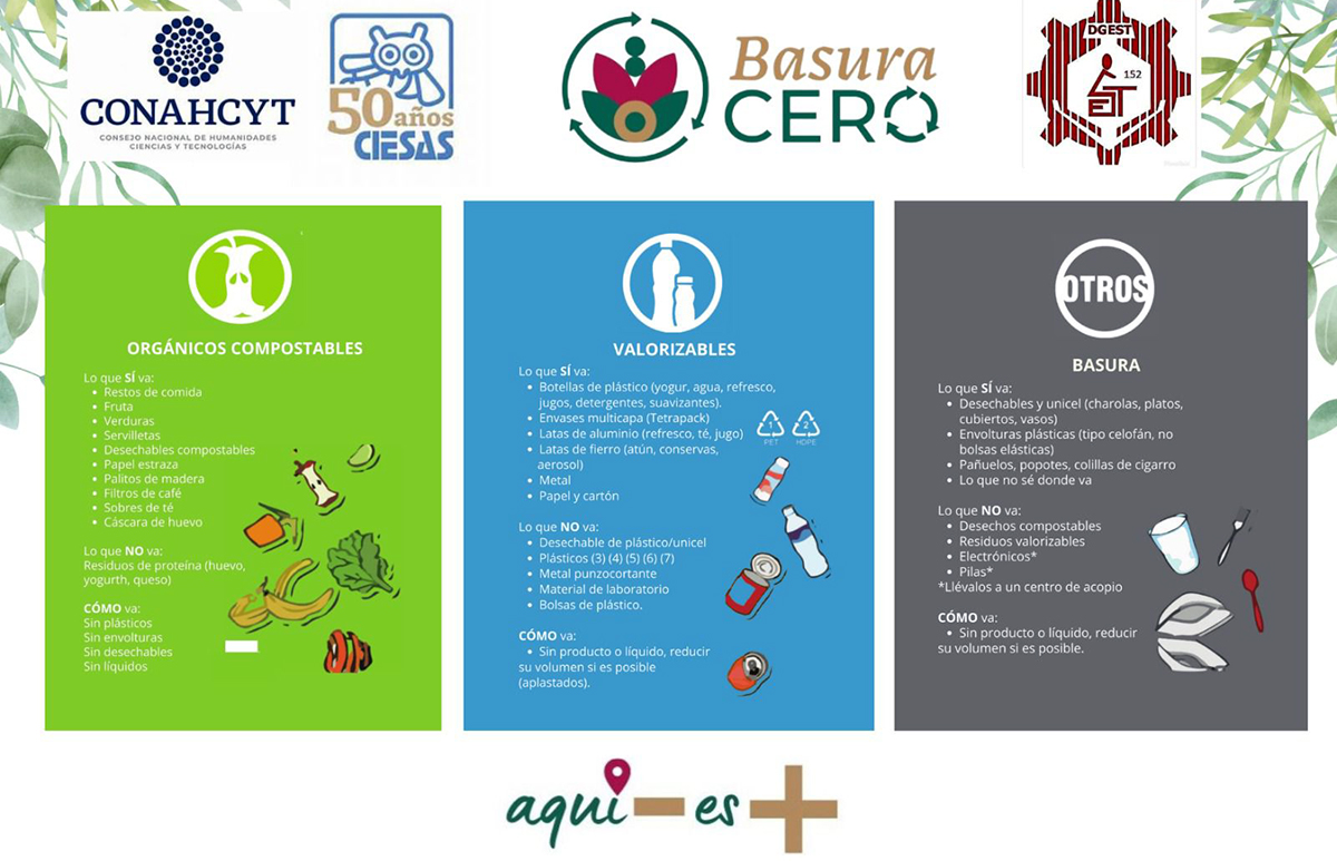 Fig 2. Esquema de separación de residuos del Programa Basura Cero Estratégico en la escuela Secundaria Técnica 152 de Acapulco, Guerrero. Foto: Trinidad Esmeralda Vilchis Pérez.