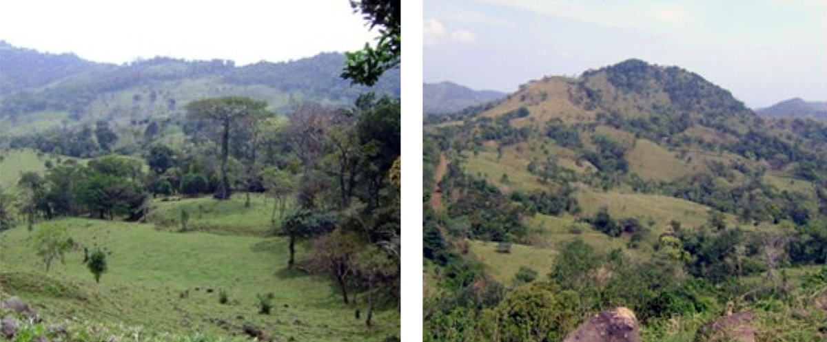 Perturbación ocurrida en la selva alta perennifolia de los Tuxtlas, Veracruz. Se pude observar pequeños fragmentos de vegetación producto de la deforestación y pérdida del hábitat (Fotos: Armando Aguirre).