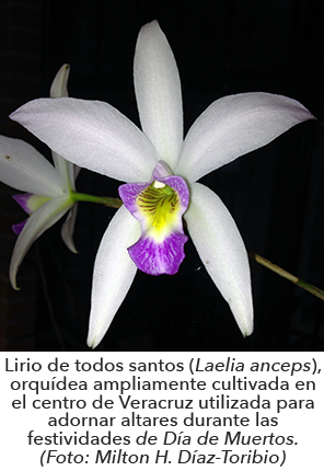 En general las flores del género Laelia también se utilizan como adorno en diversas festividades. Por ejemplo, el lirio de todos santos (Laelia anceps; Fig. 1) es utilizada para adornar los altares del Día de Muertos. Desafortunadamente derivado de la extracción ilegal de estas orquídeas que se utilizan con distintos propósitos han disminuido enormemente sus poblaciones naturales esto aunado a la deforestación y a la falta de estrategias para la participación de las comunidades en actividades de conservación, las orquídeas están en peligro de extinción. (Soto-Arenas et al., 2007).