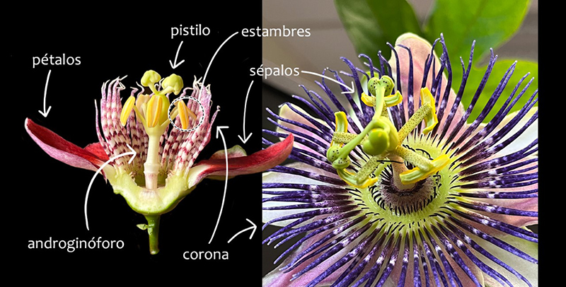 Estructura de las flores de las pasionarias. Crédito: María Teresa Jimenez Segura