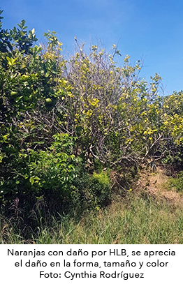 Las naranjas, toronjas, mandarinas, limas y limones son frutas que además de sabrosas, son nutritivas y aportan una gran cantidad de vitamina C. Estas frutas, también llamadas cítricos, pertenecen al género Citrus y son de gran interés comercial. México es el cuarto exportador de cítricos y el segundo exportador de limón a nivel mundial. Sin embargo, la producción de cítricos está siendo seriamente afectada por la enfermedad conocida como “enverdecimiento de los cítricos” o “HLB” (Huanglongbing), la cual causa graves daños en los tejidos de las hojas, frutos pequeños (Figura 1) con mal sabor y finalmente la muerte de las plantas. La enfermedad HLB es caudada por tres especies de la bacteria Candidatus Liberibacter, las cuales, al enfermar a las plantas, se alojan dentro de su tejido vascular (floema). Estas bacterias pueden ser dispersadas por el transporte de material vegetal contaminado y transmitidas mediante un insecto vector que, tras alimentarse de la savia de los árboles de cítricos enfermos, infecta árboles sanos.