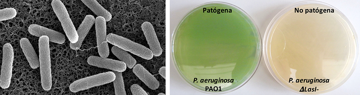 La Organización Mundial de Salud (OMS) ha clasificado a Pseudomonas aeruginosa como un patógeno prioritario en la lista de agentes bacterianos ESKAPE, con una alta resistencia a antibióticos, representando una amenaza en infecciones hospitalarias. P. aeruginosa es un patógeno oportunista capaz de infectar tanto insectos, plantas y humanos, en gran medida la virulencia de esta bacteria es controlada a través de la producción coordinada de factores de virulencia a través de un proceso denominado como quorum sensing (QS).