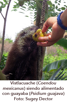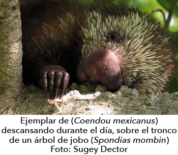Slider: Puercoespín (Coendou mexicanus) tomando una siesta sobre un árbol de guayaba (Psidium guajava). Fotografía tomada en la localidad de La Tunilla, municipio de Alvarado, Veracruz. (Foto de Sugey Dector).