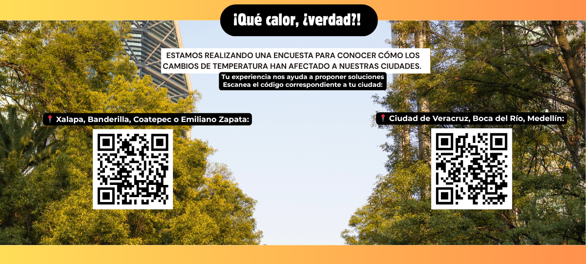 El aumento de áreas verdes puede hacer que las ciudades sean más frescas y agradables para vivir, especialmente ante los efectos del cambio climático. En el Instituto de Ecología, A.C. (INECOL) estamos evaluando cómo ha cambiado la sensación de calor en algunas ciudades de Veracruz y queremos saber cómo ha aumentado la temperatura superficial, cómo lo perciben quienes viven ahí y qué hacen para sobrellevarlo en los últimos años. Todo esto con la intención de proponer soluciones prácticas que ayuden a enfriar nuestras ciudades y, así mejorar nuestra calidad de vida. ¿Te gustaría contribuir? Responde esta breve encuesta y cuéntanos: ¿cuánto calor sientes?