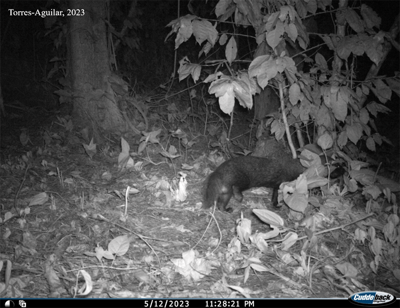 Fotografía propia. Torres-Aguilar 2023. Ejemplar de grisón (Galictis vittata) en finca cafetalera del centro de Veracruz